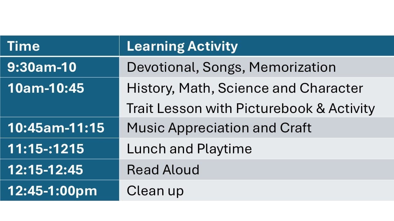 Inspired by Well-Educated heart philosophy, we use powerful and memorable stories to teach principles and lesson. We also utilize songs, paintings, poetry, and engaging activities to warm their hearts to the subjects being taught.